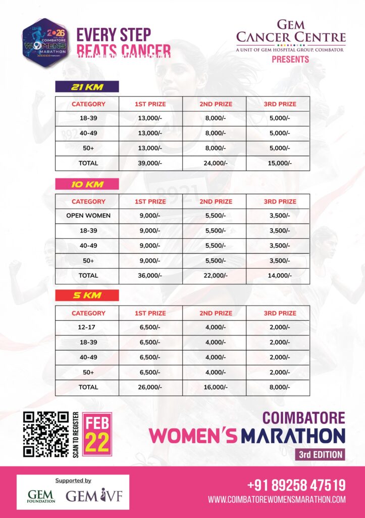 Overall, the Coimbatore night women’s marathon is a fantastic event that promotes awareness, health, fitness, and women’s empowerment, while also fostering a sense of community and fun. It is a great opportunity for women to come together and celebrate their strength and determination, while also making a positive impact on the community.